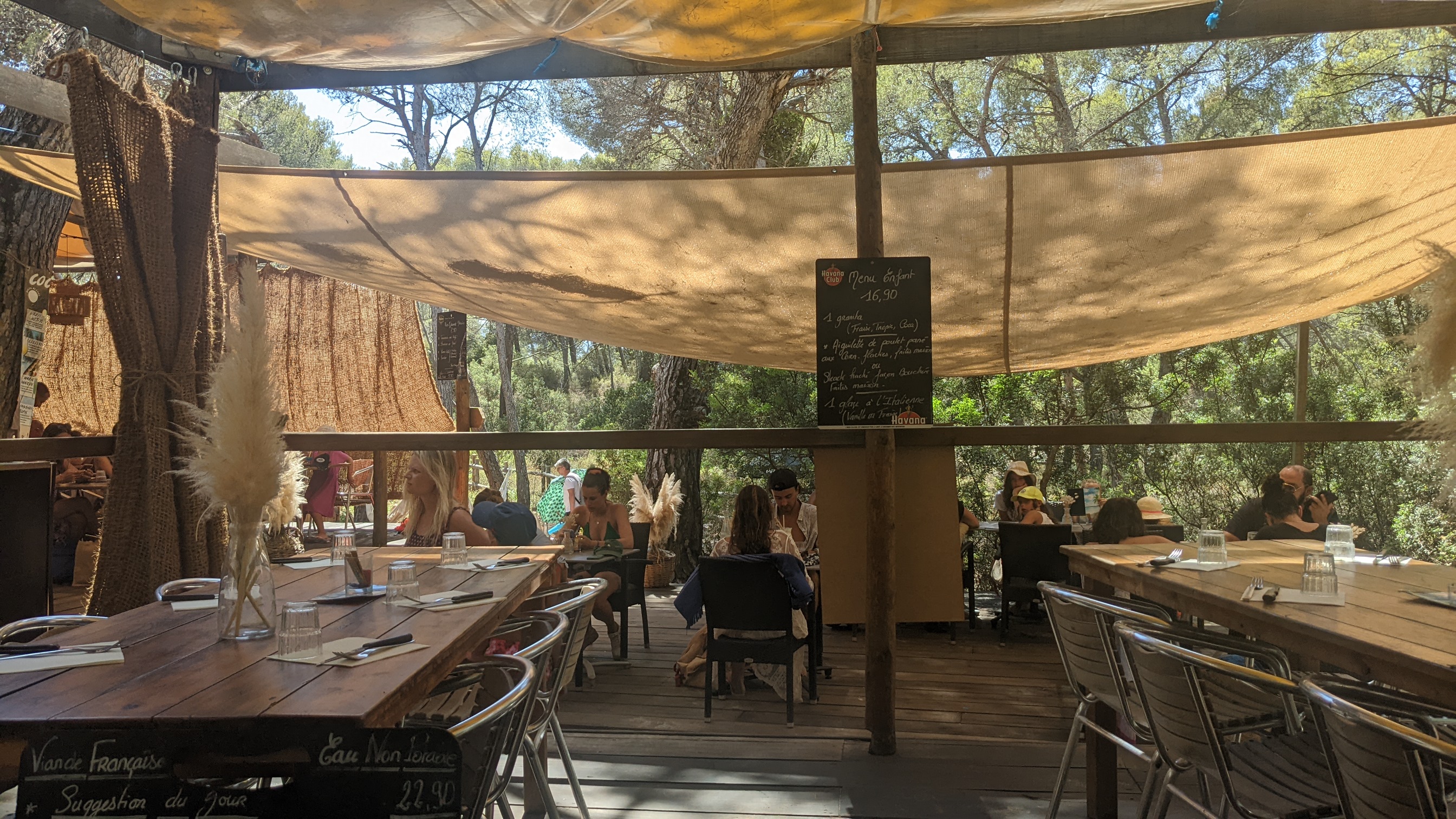 Un cadre hors du commun. Restaurant situé en plein air dans une pinède. À faire absolument. Réservation vivement conseillée