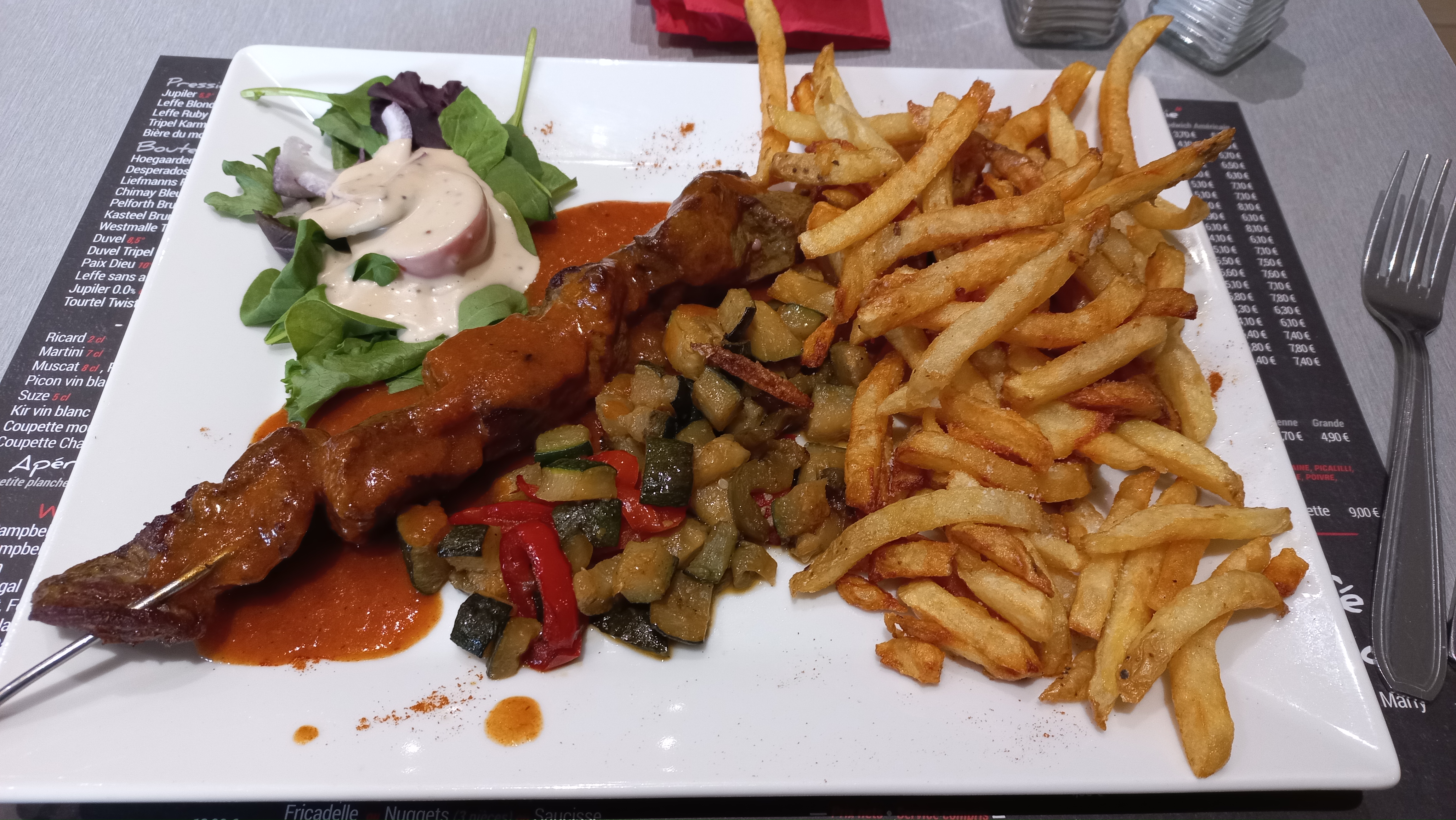 Service rapide Frites excellentes Personnels et patron aux petits soins