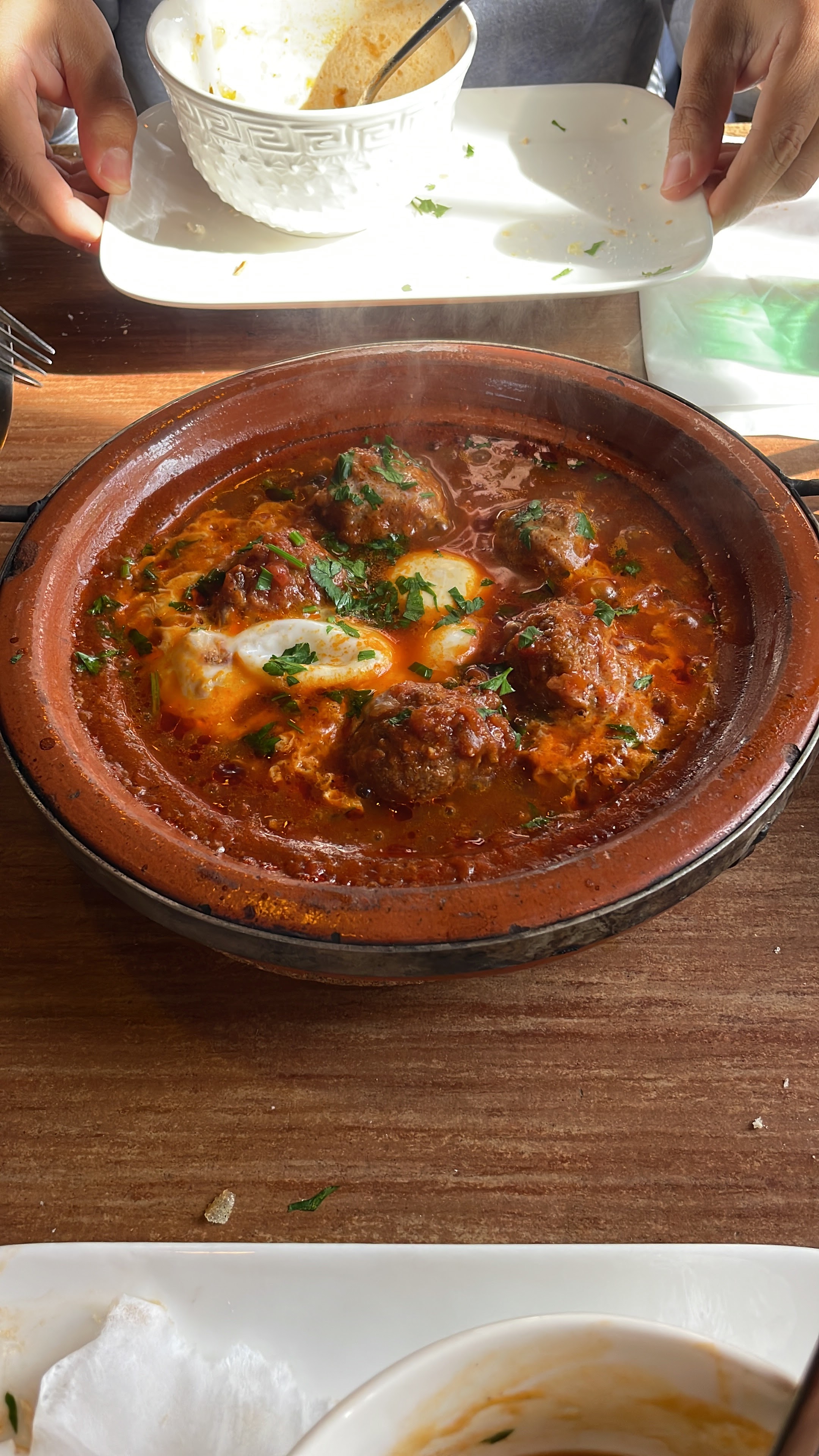Le lieu n'est pas très bien indiqué. La viande des tajines kefta semble être du surgelé. Le tajine poulet aux olives,ou plutôt olives au poulet, trop cuit, sans sauce et une minuscule cuisse, pas très beau visuellement, sans parler du mhajeb tacos ... Et la crème anglaise du fondant été périmée. C'est dommage