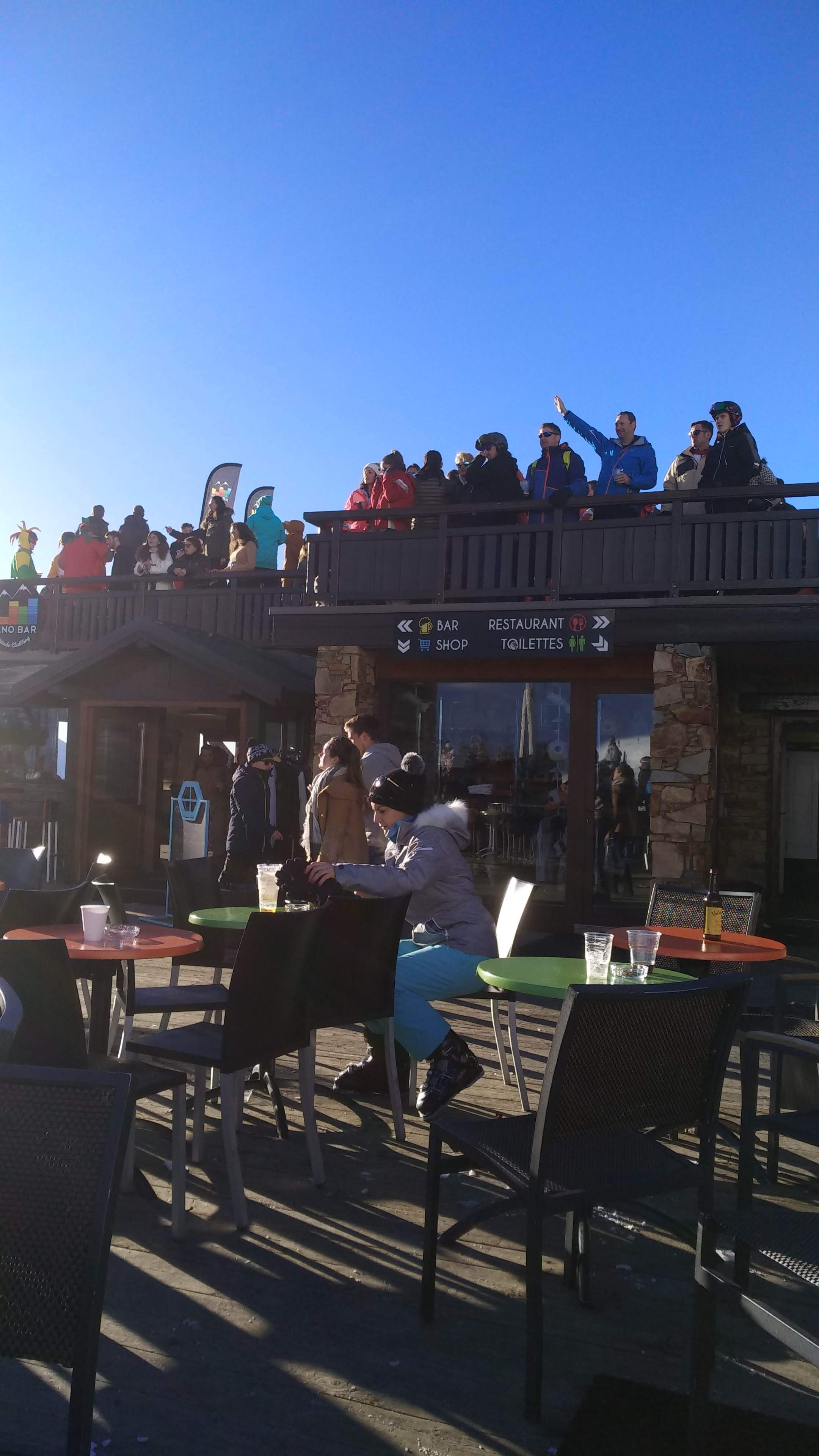 Bonne ambiance, une vue incroyable, parfais pour faire la fête à la fin des pistes. Musique très cool aussi