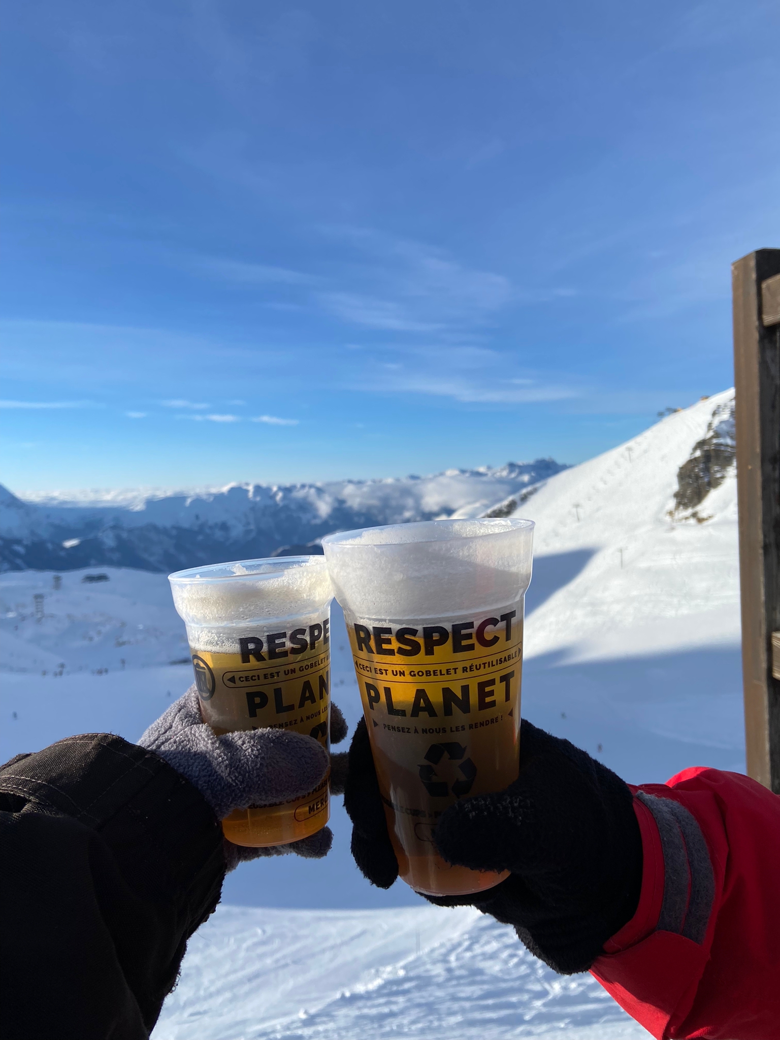 Ambiance boum boum mais sympa pour siroter notre boisson chaude sur la terrasse au soleil de la montagne