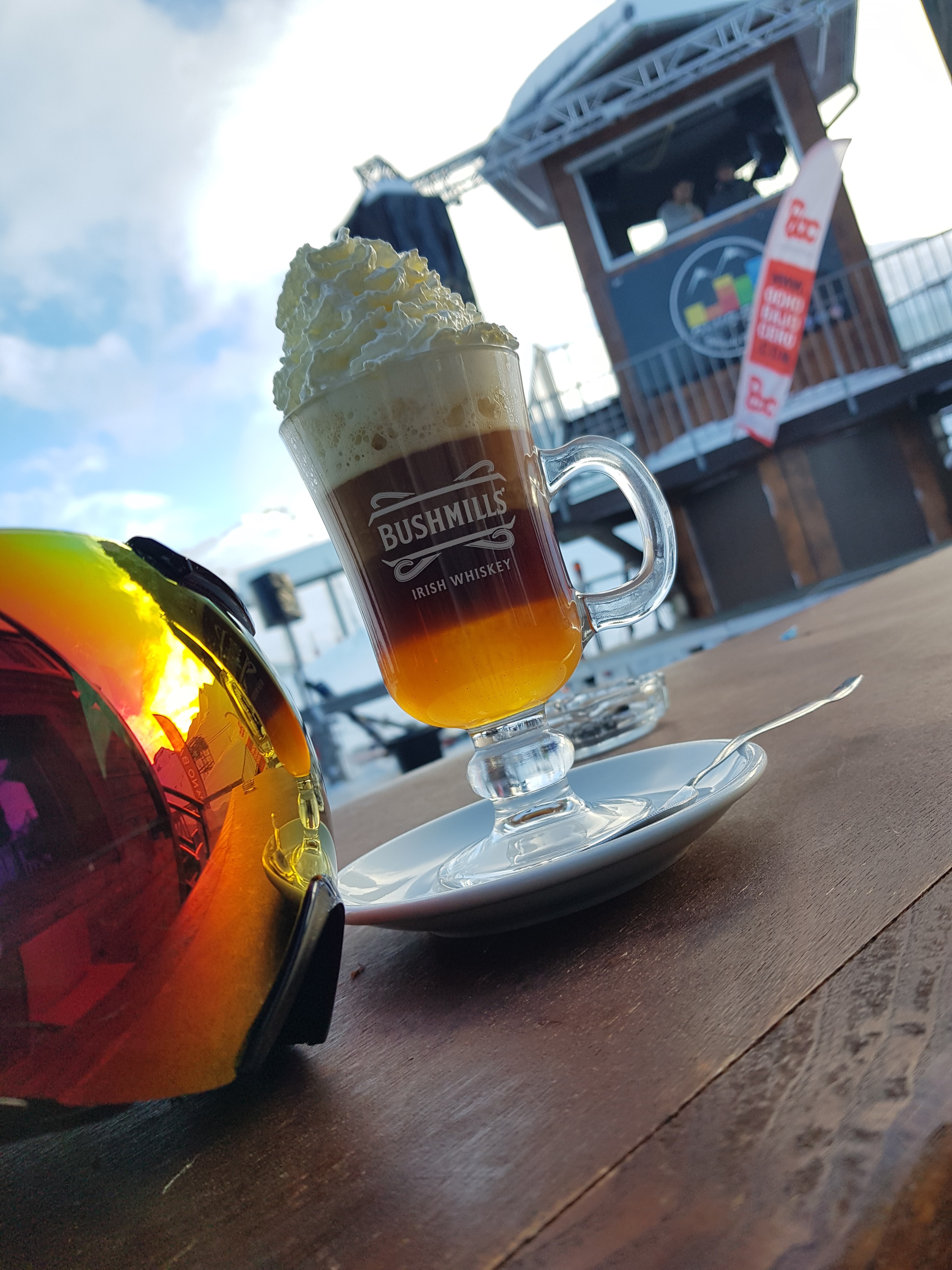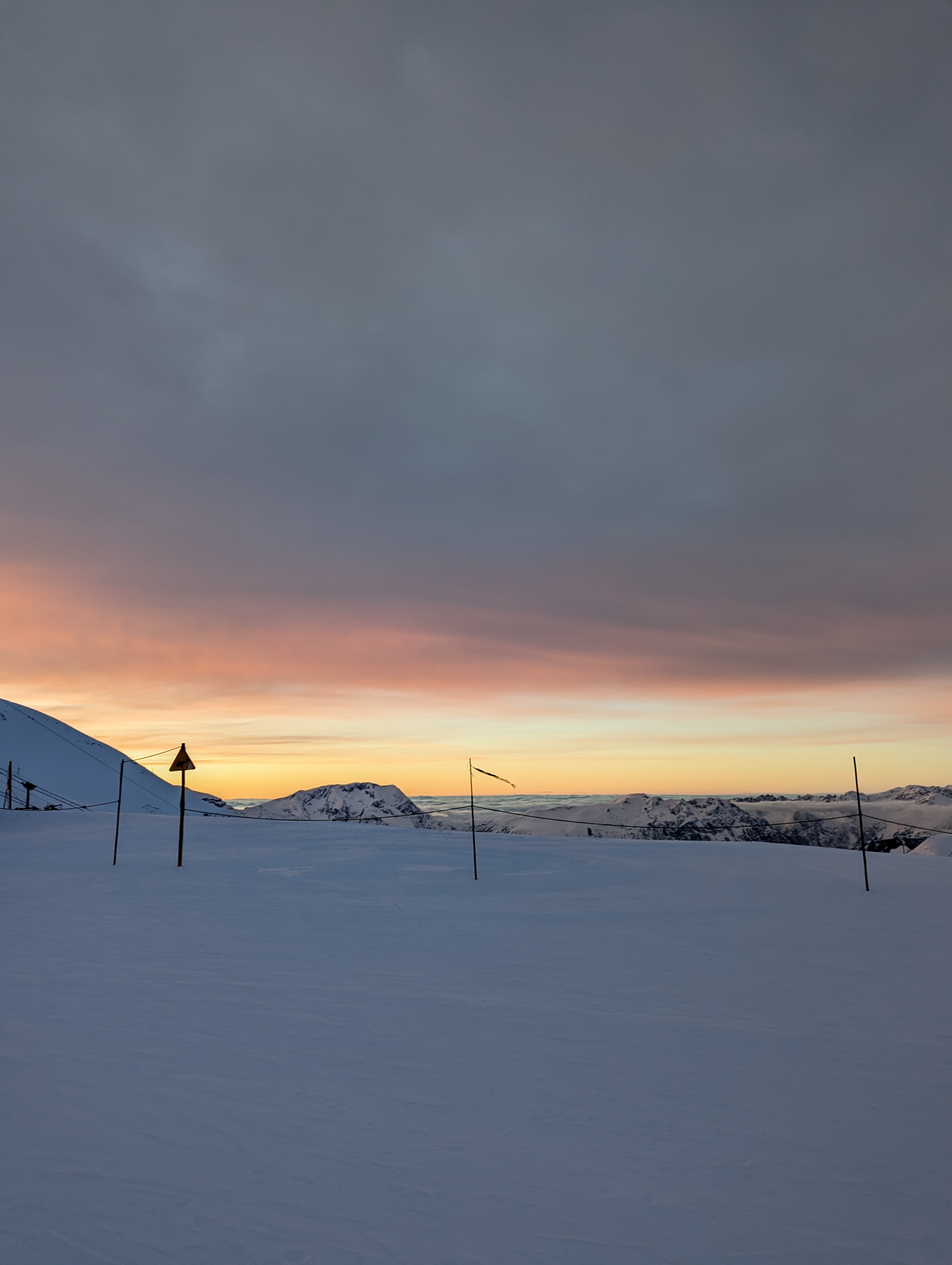 Lieu parfait pour se prendre une ou plusieurs bières avant de fermer les pistes avec un beau coucher de soleil. Pas d'inquiétude la sécurité passé derrière les derniers ;)